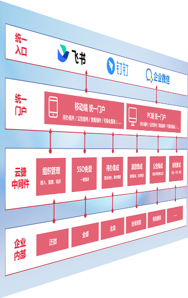 对协作平台提供支持服务,,,,支持企业应用与协作平台对接,,,包含组织同步、、、消息集成、、、、待办集成等。。支持目前主流的协作平台:钉钉、、、企微和飞书。。。